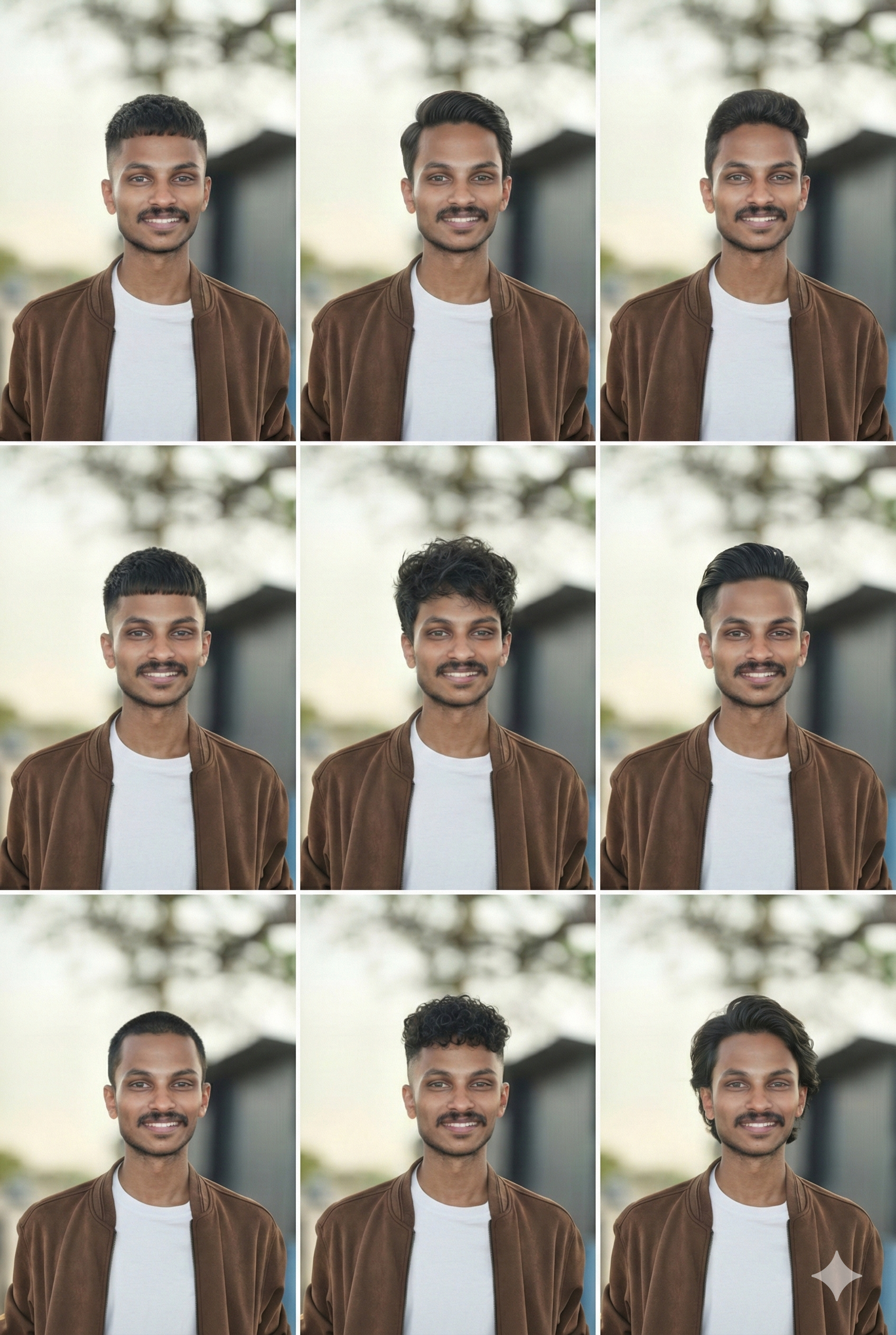 - Hairstyles applied realistically while preserving the EXACT SAME FACE